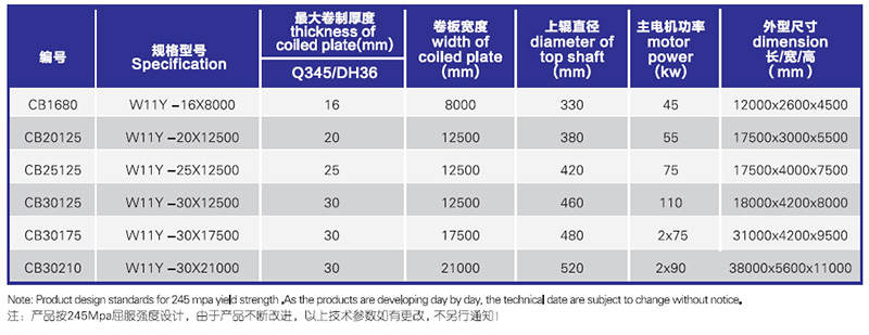 W11Y船舶專用卷板機j結構式為三輥對稱式,是引進國內外優良技術研發的一款專用卷板機。性能穩定,操作方便。適用于超寬圓弧形零件的卷制。可卷板厚3mm-50mm,板寬28000mm的板材。